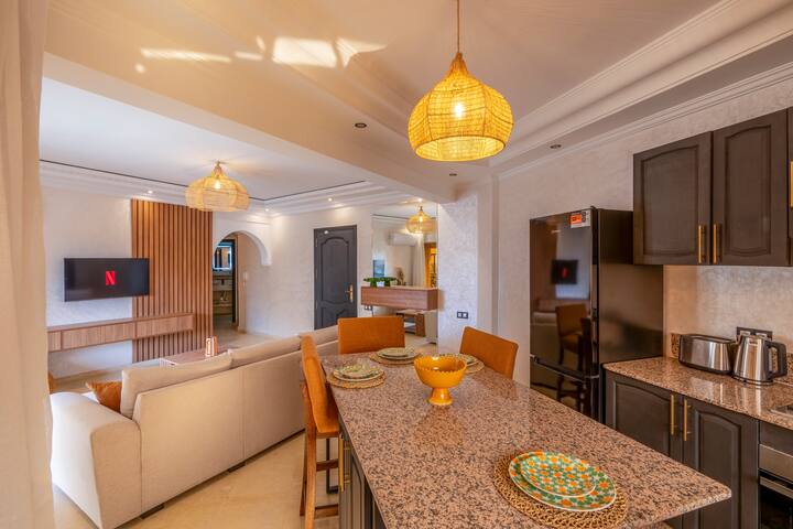 À deux pas des commerces, restaurants et attractions du centre-ville, cet appartement est l’adresse idéale pour vivre Marrakech avec confort et élégance.✅ Points forts
